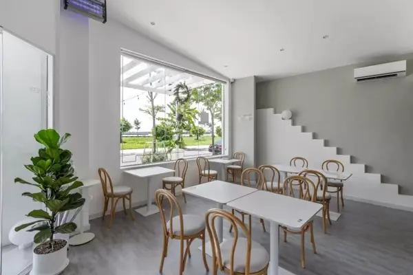 Dự án cải tạo biệt thự cũ thành tiệm Bistro CafeDự án là công trình cải tạo từ một căn biệt thự liền kề ba tầng, diện tích 450m², tọa lạc tại vị trí góc đường trong khu dân cư ven biển tại Kiên Giang. Với mục tiêu chuyển đổi công năng thành một quán café mang tính trải nghiệm thị giác cho thương hiệu Landfuse, thiết kế hướng đến nhóm khách hàng trẻ và khả năng linh hoạt thay đổi hình ảnh theo mùa. Yếu tố khí hậu vùng biển – với độ ẩm cao và khả năng gây ảnh hưởng đến độ bền vật liệu – được xem xét như một điều kiện thiết kế cần lưu tâm. Các giải pháp hoàn thiện, chi tiết cấu tạo và tổ chức lớp bảo vệ được nghiên cứu để đảm bảo công trình ổn định trong quá trình sử dụng dài hạn.