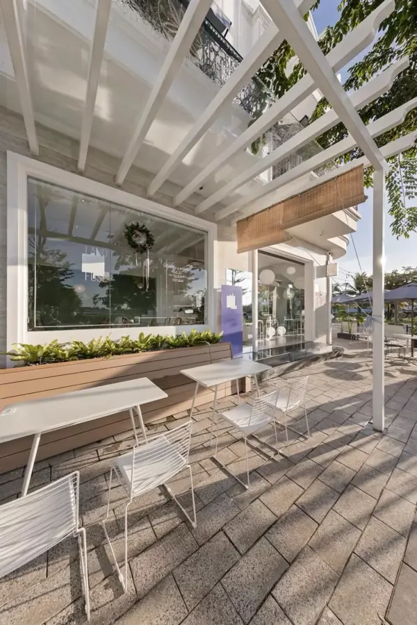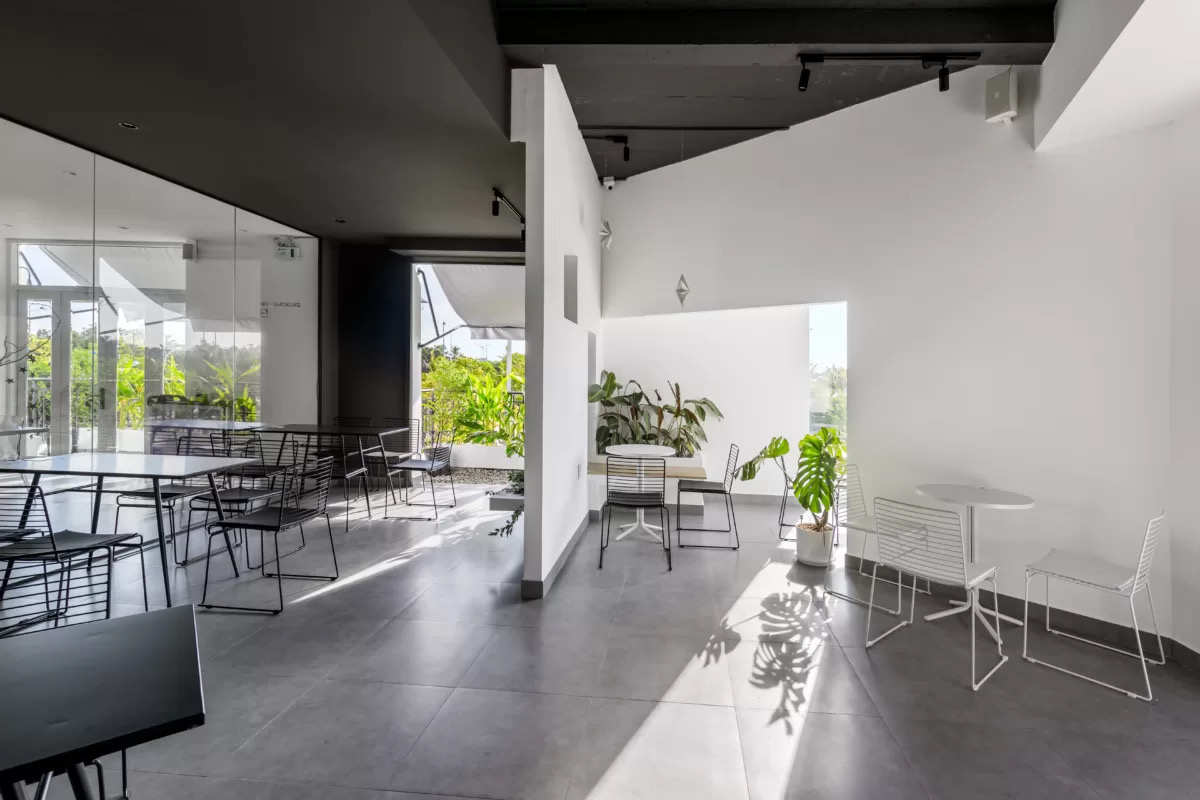 Dự án cải tạo biệt thự cũ thành tiệm Bistro CafeDự án là công trình cải tạo từ một căn biệt thự liền kề ba tầng, diện tích 450m², tọa lạc tại vị trí góc đường trong khu dân cư ven biển tại Kiên Giang. Với mục tiêu chuyển đổi công năng thành một quán café mang tính trải nghiệm thị giác cho thương hiệu Landfuse, thiết kế hướng đến nhóm khách hàng trẻ và khả năng linh hoạt thay đổi hình ảnh theo mùa. Yếu tố khí hậu vùng biển – với độ ẩm cao và khả năng gây ảnh hưởng đến độ bền vật liệu – được xem xét như một điều kiện thiết kế cần lưu tâm. Các giải pháp hoàn thiện, chi tiết cấu tạo và tổ chức lớp bảo vệ được nghiên cứu để đảm bảo công trình ổn định trong quá trình sử dụng dài hạn.